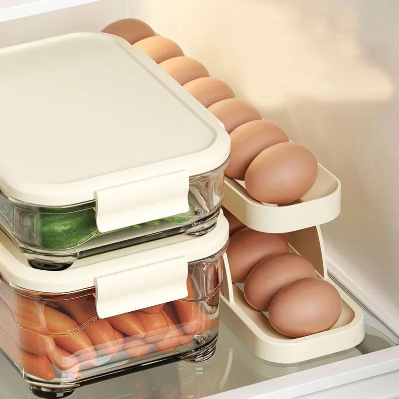 Automatic Scrolling Egg Rack Holder Storage Box Egg Basket Container Organizer Rolldown Refrigerator Egg Dispenser For Kitchen